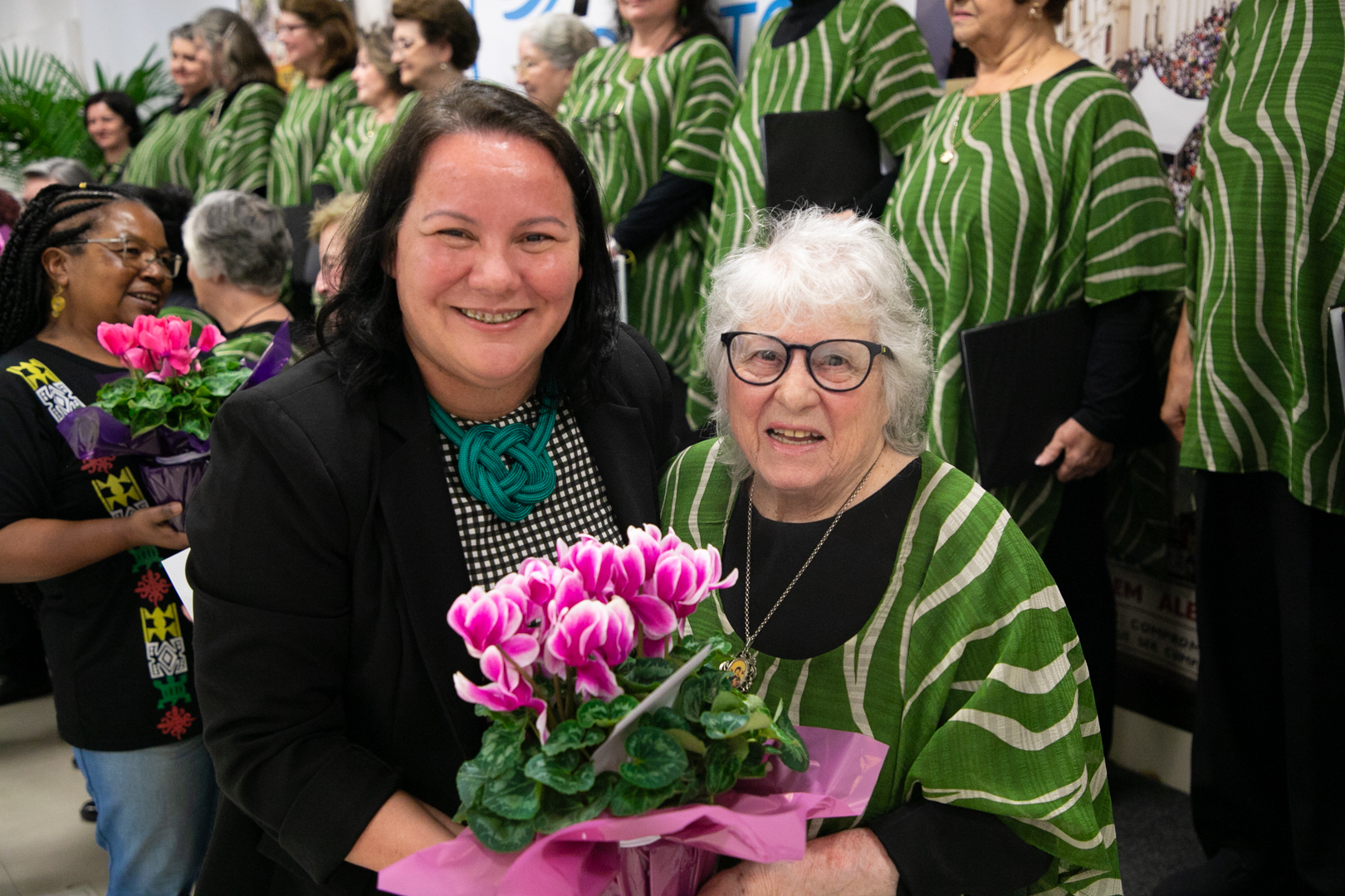 A secretária de Administração e Patrimônio da APP, Nádia Brixner, também agradeceu às cantoras pela dedicação ao Coral. “Hoje estamos fazendo uma homenagem a essas mulheres. Temos três delas que estão desde o início e está chegando gente nova nessa beleza que é o Coral da APP”, disse.