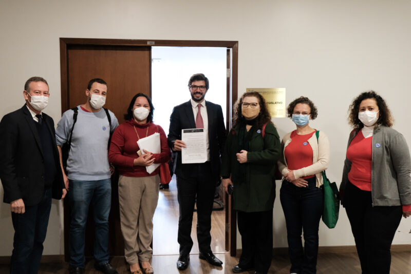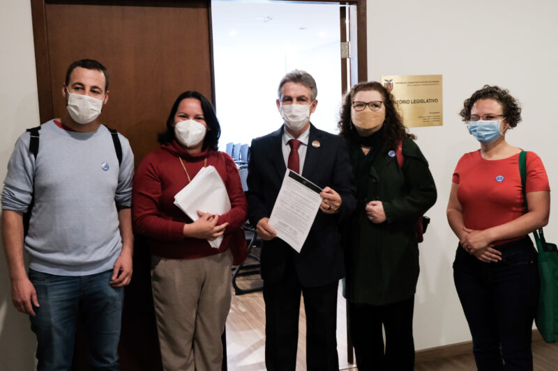 Dirigentes da APP entregaram ao parlamentar, ao presidente do Legislativo (Ademar Traiano – PSD) e a diversos deputados(as) da base governista e da oposição, um documento com o título: “A educação básica no Paraná pede socorro: é preciso encerrar o ciclo de retirada de direitos que começou em 2016”.