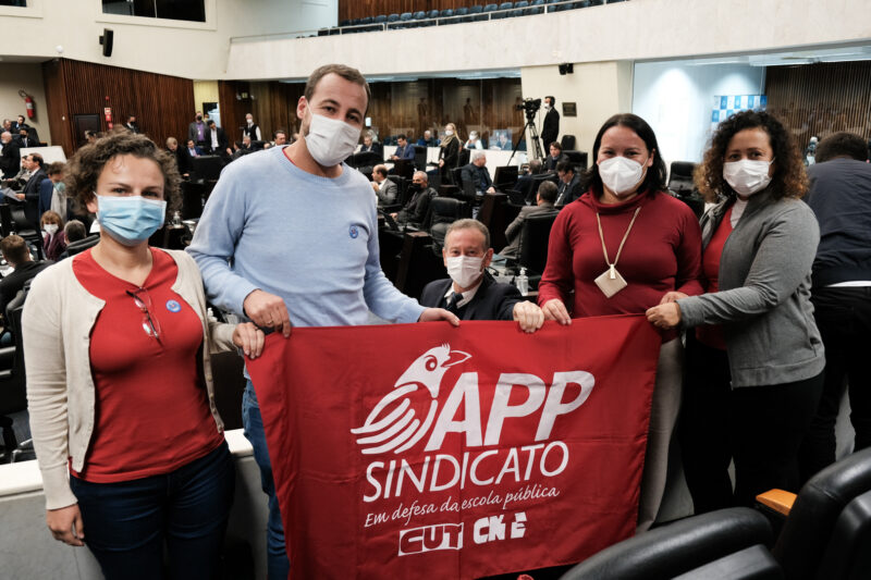 Dirigentes da APP entregaram ao parlamentar, ao presidente do Legislativo (Ademar Traiano – PSD) e a diversos deputados(as) da base governista e da oposição, um documento com o título: “A educação básica no Paraná pede socorro: é preciso encerrar o ciclo de retirada de direitos que começou em 2016”.