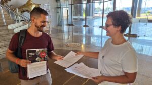 O secretário de Comunicação da APP-Sindicato, Daniel Matoso, enfatiza “nosso objetivo na panfletagem foi dar as boas-vindas aos(às) diretores(as) neste início de ano letivo e entregar uma carta que reafirma nossa luta em defesa da escola pública com gestão pública e democrática, além de apresentar a nossa proposta de equiparação salarial”.