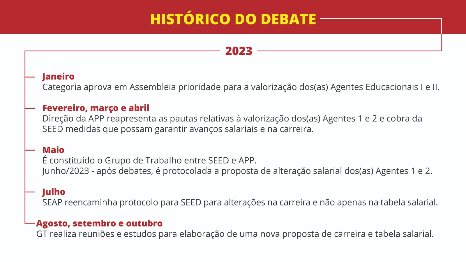 O diretor-geral também reafirmou os princípios defendidos pela APP; ganho para todos os níveis – tanto para Agentes I quanto para Agentes II – e possibilidade de avanço na carreira.