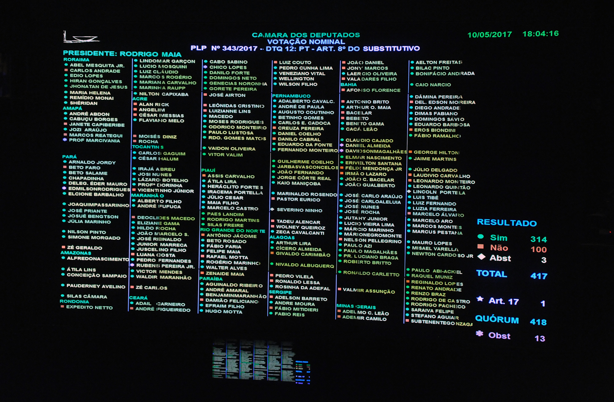 Apesar dos esforços da base de oposição ao atual governo federal, o plenário da Câmara concluiu na noite de quarta-feira (10) a votação do Projeto de Lei Complementar (PLP 343/17), do governo Temer, que impõe regras para a recuperação dos Estados endividados. A bancada petista apresentou um destaque ao substitutivo do projeto, de autoria do deputado Pedro Paulo (PMDB-RJ), na tentativa de derrubar as condicionantes estabelecidas para a renegociação das dívidas. Entre outros pontos, a proposta limita a realização de concursos públicos, impede o aumento de salários dos servidores e estabelece a privatização de empresas públicas. O destaque foi aprovado pela base governista por 314 votos a 100.
