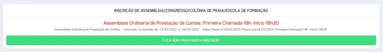 Para garantir a participação com inscrições abertas desde o dia 15 de março, os(as) interessados(as) podem se inscrever no portal “Minha Sindicalização”, na aba “Inscrição de Assembleia”. Não deixe para última hora!