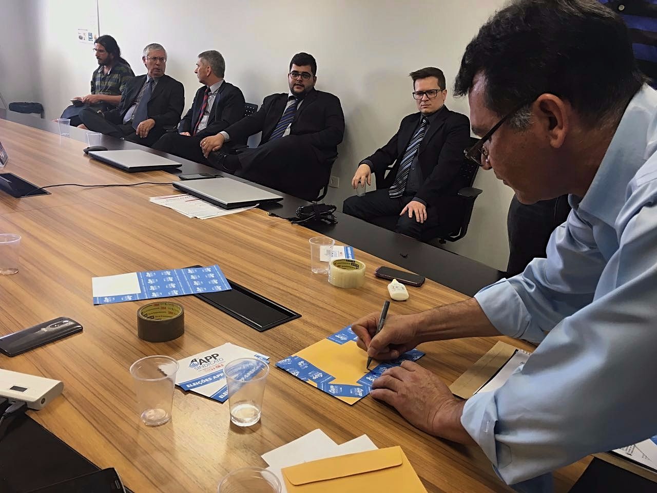 Nesta quinta-feira (07), às 16 horas, aconteceu o encerramento da sessão pública de lacração do sistema eleitoral da APP-Sindicato. A reunião ocorreu na sede estadual, em Curitiba (PR). Participaram os(as) integrantes da Comissão Eleitoral Estadual, representantes das chapas concorrentes, consultores técnicos responsáveis pelo sistema e auditores.
