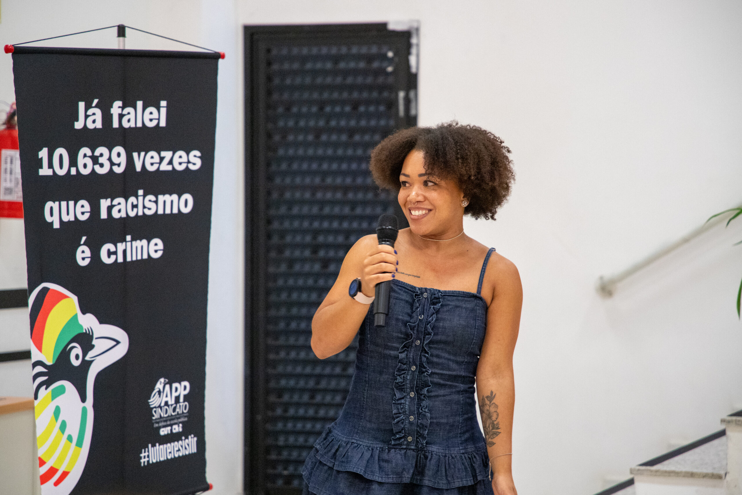 Com este chamado à luta, a secretária de Promoção de Igualdade Racial e Combate ao Racismo da APP, Celina Wotcoski, afirmou que é necessário agradecer a quem trilhou o caminho da resistência e do enfrentamento ao racismo anteriormente para que hoje as pessoas negras ocupem mais espaços.