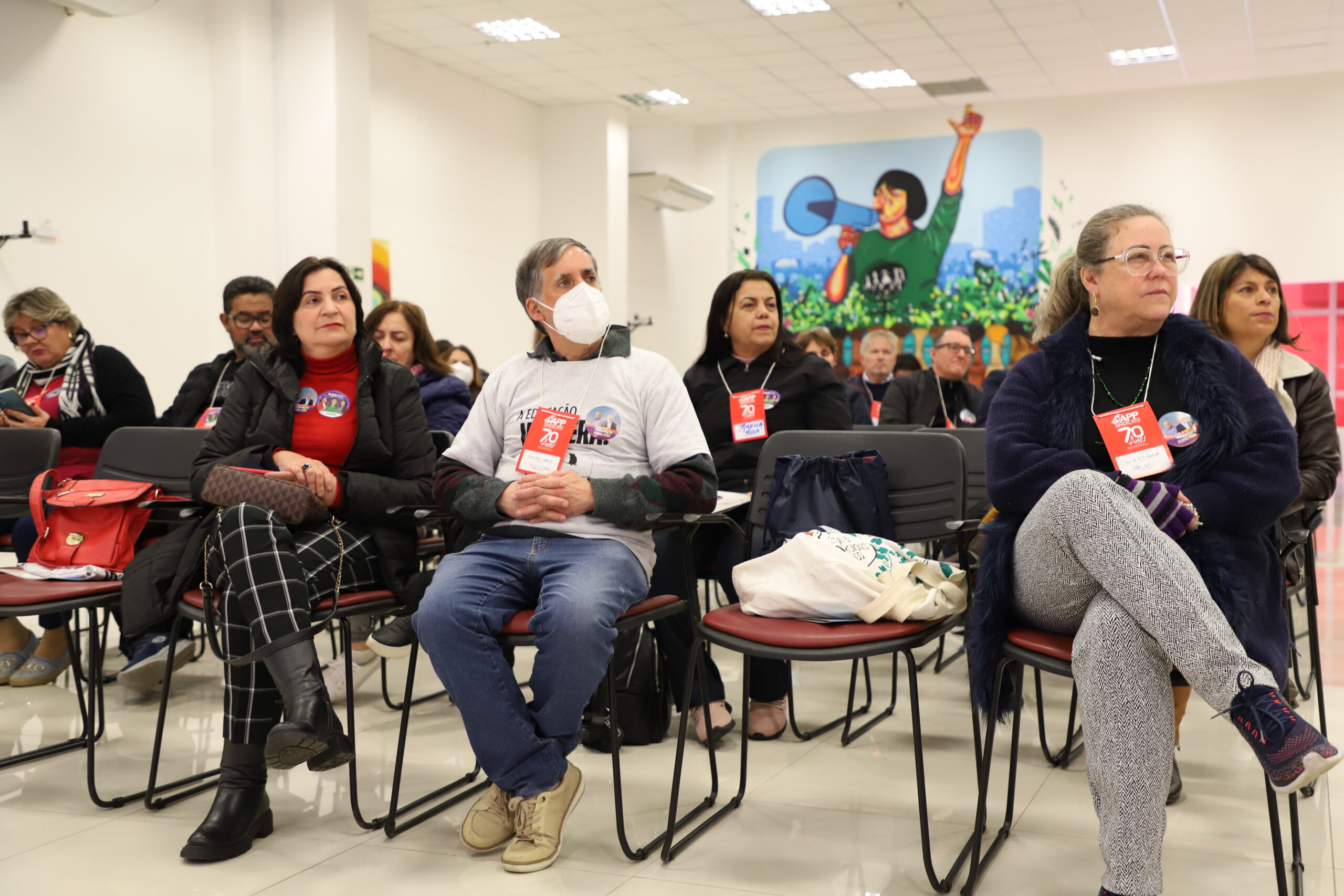 Começou hoje (16), o Seminário de Saúde e Previdência com representantes dos(as) 29 núcleos sindicais. O objetivo do evento é debater com a categoria formas de melhorar o Sistema de Atendimento à Saúde do(a) Servidor(a), perícia médica e explicar as novas regras da previdência estadual.