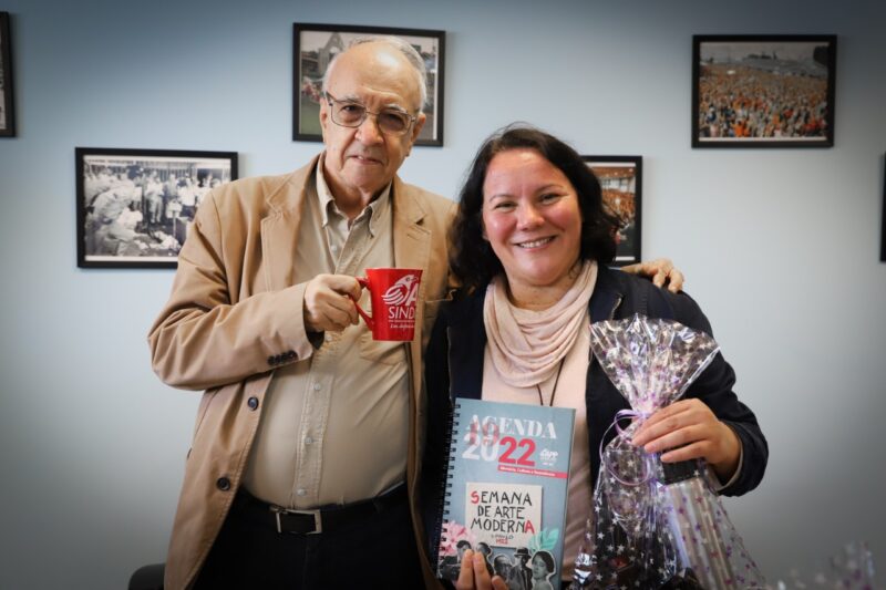 Na manhã desta quinta-feira (26), a APP sindicato recebeu a visita do sociólogo Emir Sader, que está em viagem pelo Paraná.