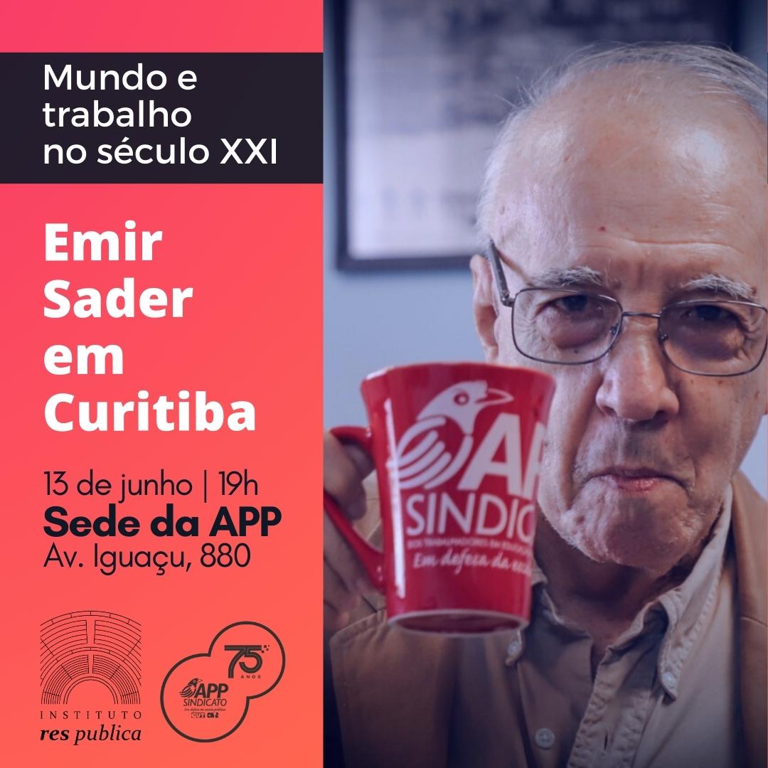 No dia 13, às 19h, Emir estará em Curitiba, na sede do Sindicato (Av. Iguaçu 880, Rebouças). A atividade é promovida em parceria entre a APP e o Instituto Res Publica.