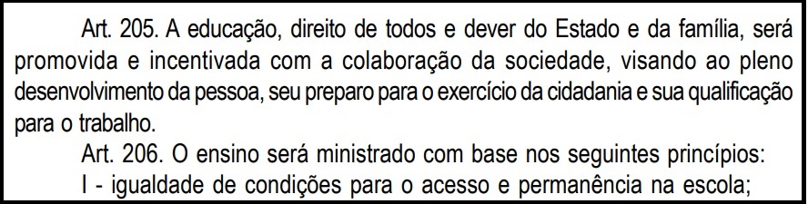 Educação é um direito da sociedade e um dever do Estado, que tem a obrigação constitucional de garantir o acesso e a permanência a todos(as).