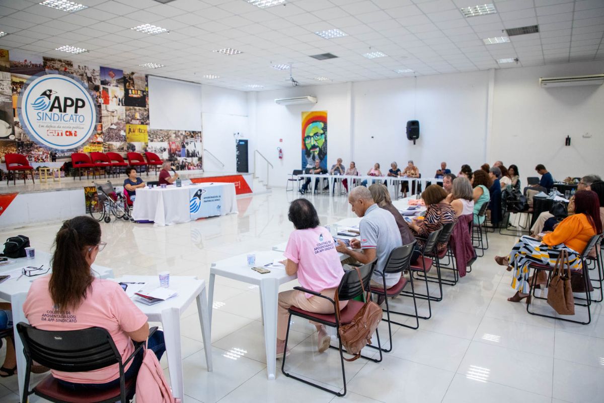 Começou nesta terça-feira (18) o encontro estadual de planejamento da Secretaria de Aposentados(as) da APP-Sindicato para o ano de 2025. A atividade acontece em Curitiba, na sede do sindicato, e reúne os(as) secretários(as) regionais da pasta, representantes do segmento nos 29 núcleos sindicais da APP. Até amanhã, serão dois dias de trabalho com avaliação do último período, debates e construção de estratégias para fortalecer as pautas e superar desafios dos(as) educadores(as) aposentados(as).