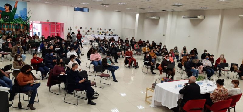 A presidenta da APP, Walkiria Mazeto, abriu o encontro abordando os desafios do período. “É simbólico que a primeira atividade presencial que fazemos com este porte no período pandêmico seja para enfrentar a política de não implantação do Piso por parte dos prefeitos e do governo do Estado. É hora de somar forças e unir as nossas lutas”.