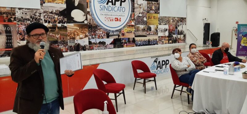 O evento abordou a luta da APP em defesa das carreiras, da aplicação do Piso nas cidades e de mais recursos públicos para o financiamento à educação. É um contraponto ao cenário nacional e estadual, marcados pelo desmonte, sucateamento, privatização e terceirização.