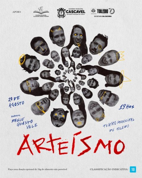 Arteísmo se apresenta em Toledo dessa vez! É o espetáculo dos(as) formados(as) no Curso Técnico em Teatro do Colégio Eleodoro de Cascavel, da turma 2021-2022.