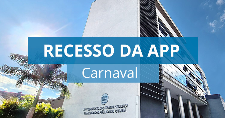 A sede estadual da APP-Sindicato, em Curitiba, e os 29 Núcleos Sindicais estarão fechados de segunda (3 de março) a quarta-feira (6 de março), devido ao feriado nacional de Carnaval e recesso.