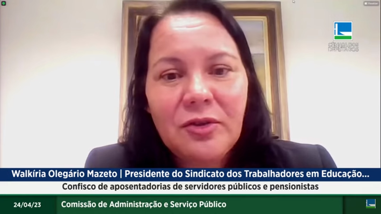 O fim do confisco das aposentadorias dos(as) servidores(as) públicos(as) e pensionistas passa pela realização de concursos públicos, pois a terceirização reduz as contribuições e esvazia os fundos de previdência. A observação foi feita pela presidenta da APP, Walkiria Mazeto, em audiência pública realizada na Câmara dos Deputados na segunda-feira (24).