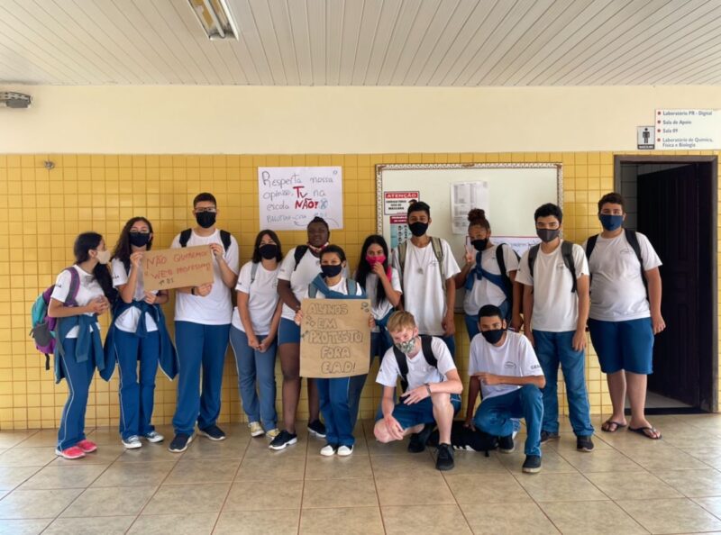Elisete Inês Wagner de Souza é mãe de estudante relata que se espantou quando soube que o filho passava manhãs inteiras tendo apenas aulas pelo monitor, mesmo estando presencialmente em sala. “Nós, pais, estamos buscando o NRE para relatar nosso descontentamento com este tipo de aula. Reconhecemos que o modelo EaD funcionou na pandemia, mas agora com o retorno presencial é realmente decepcionante mandar um adolescente de 15, 16 anos para escola, e colocá-los em uma sala de aula para assistir ao monitor”, enfatiza.