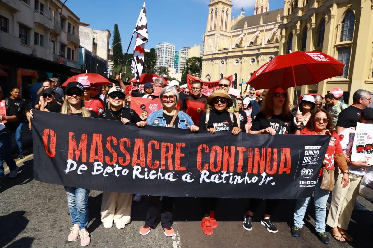“Neste dia que marca dez anos daquela violência do Estado, retornamos às ruas para denunciar que os ataques continuam, mas também para mostrar ao governo que seguimos fazendo a resistência e que o nosso trabalho tem valor. Nós atendemos a população paranaense e, além de valorização, a nossa luta é pela oferta de uma educação pública de qualidade para todos e todas e melhores condições de trabalho na saúde, nas universidades, na segurança pública, em todas as áreas do Estado”, disse a presidenta da APP-Sindicato, Walkiria Mazeto.