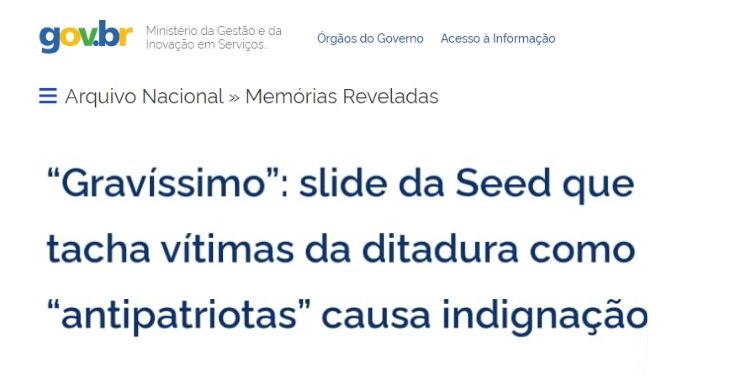 Leia também: “Gravíssimo”: slide da Seed que tacha vítimas da ditadura como “antipatriotas” causa indignação