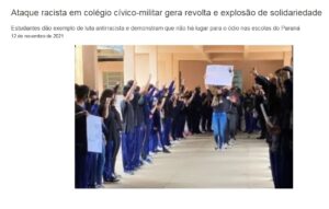 Ataque racista em colégio cívico-militar gera revolta e explosão de solidariedade