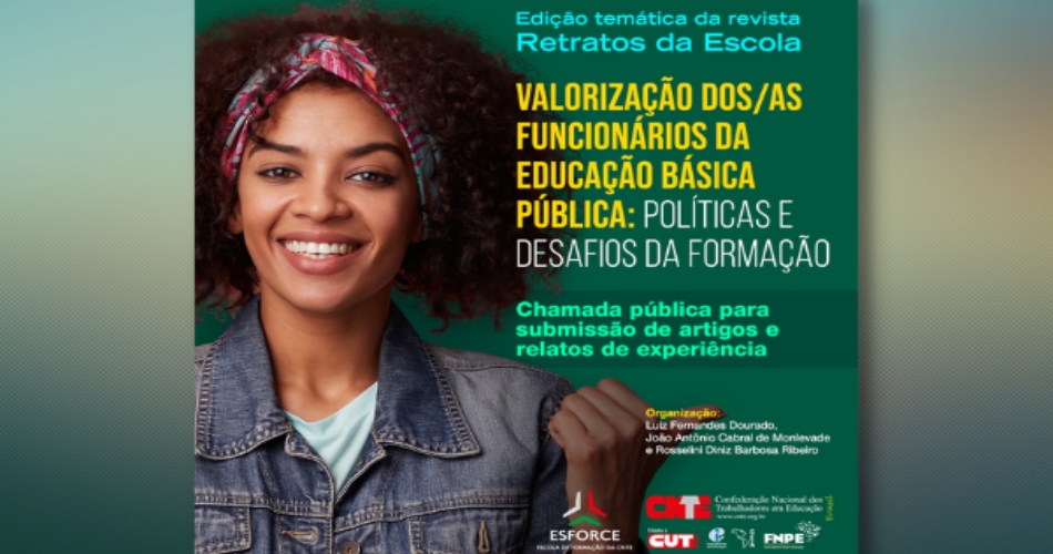 A segunda edição de 2023 da Retratos da Escola (volume 17, número 38) terá como tema: “Valorização dos(as) funcionários da educação básica pública: políticas e desafios da formação”, sob organização dos professores Luiz Fernandes Dourado, João Antônio Cabral de Monlevade e a professora Rosselini Diniz Barbosa Ribeiro.