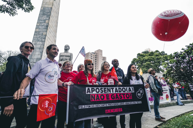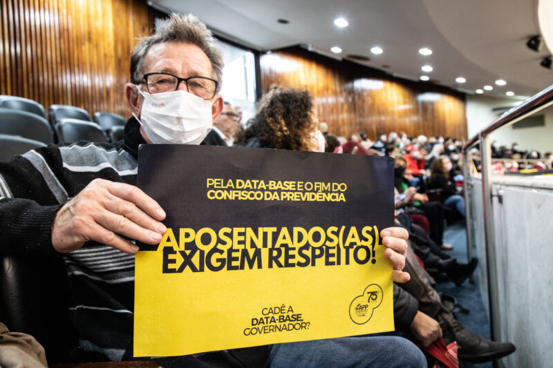 A APP e o Fórum Estadual dos Servidores (FES) reivindicam a isenção até o teto do INSS para aliviar a situação dos(as) aposentados(as), penalizados com o aumento da contribuição previdenciária desde 2019, quando o desconto de 14% passou a incidir sobre a parte do salário que supera três salários mínimo (R$ 3.636,00).
