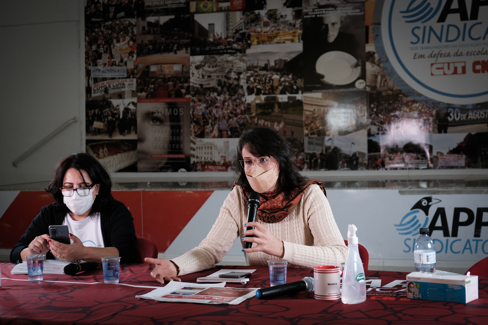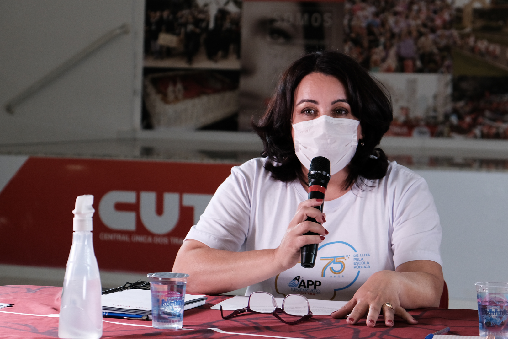 A Assembleia Estadual foi dirigida por uma mesa exclusivamente feminina, contando também com a presença da secretária de Assuntos Municipais da APP, Marcia Oliveira. “É importante lembrar às redes municipais que pretendem se somar ao calendário, que cada município de aprová-lo em Assembleia própria para somar forças”, lembra Marcia.