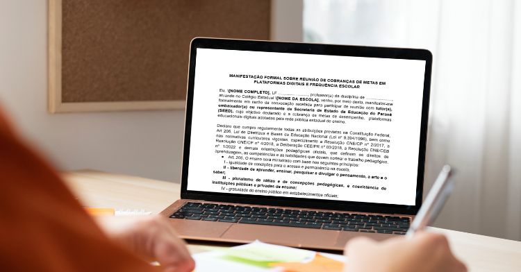 A iniciativa faz parte do Movimento Plataforma Zero, deliberado pela categoria em assembleia estadual, para combater a política de assédio e adoecimento da Seed nas escolas. O documento cita a Constituição Federal, a Lei de Diretrizes e Bases da Educação e normativas dos conselhos Nacional e Estadual da Educação.