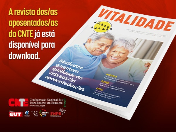 Produzida com o apoio das entidades filiadas à CNTE, a Revista Vitalidade convida o(a) leitor(a) a conhecer as histórias dos(as) aposentados(as) Brasil afora e se informar sobre a pós-aposentadoria, além de trazer entrevistas e artigos sobre os direitos e as pautas que afetam diretamente a categoria.