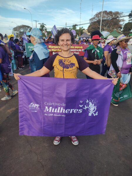 “A nossa luta é por autonomia sobre os corpos, vida livre de todas as formas de violência, sem racismo e sexicismo, soberania alimentar, segurança nutricional, justiça ambiental e climática, autonomia econômica e outros”, diz a secretária da Mulher Trabalhadora e Direitos LGBTI+ da APP, Taís Adams.