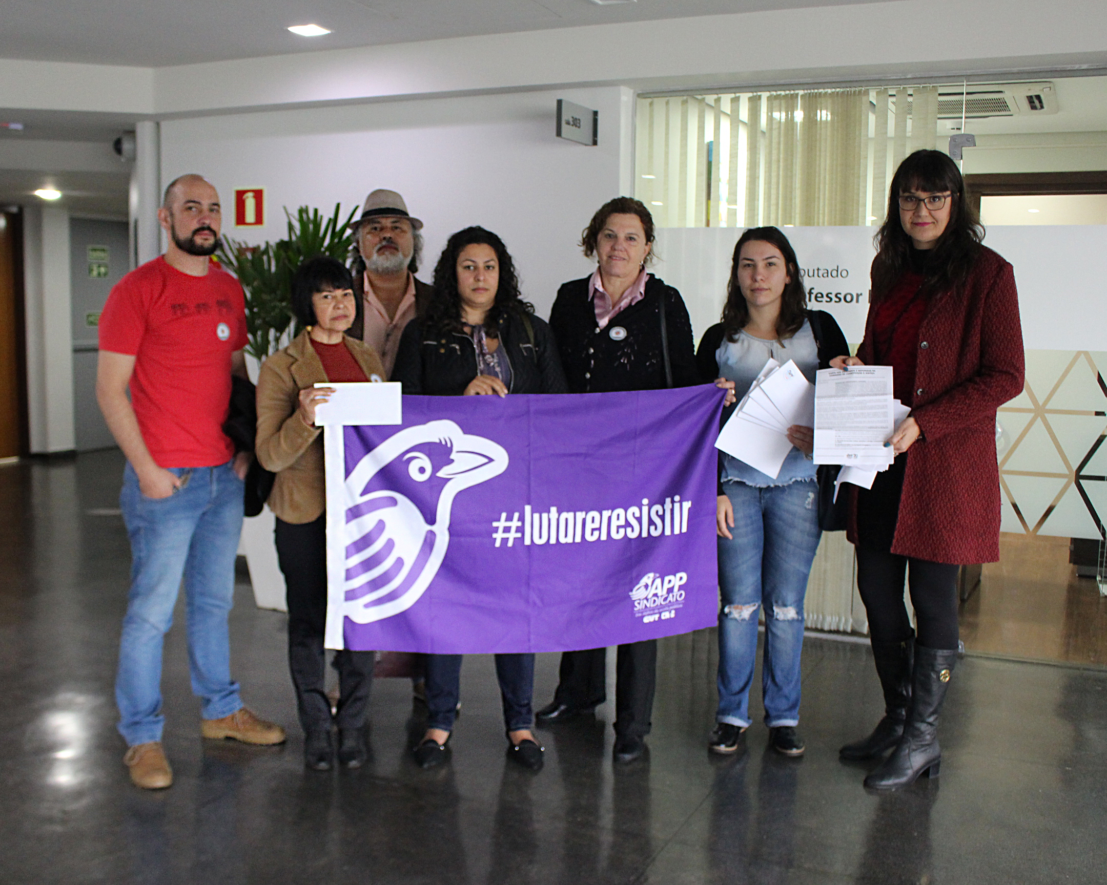 Na tarde de hoje(06), a direção estadual da APP-Sindicato esteve no gabinete dos(as) deputados(as) estaduais que compõem a Comissão de Constituição e Justiça (CCJ), na Assembleia Legislativa do Paraná (Alep). A APP elaborou uma carta reiterando seu posicionamento contrário à aprovação do Projeto de Lei 606/2016, o PL da Mordaça.