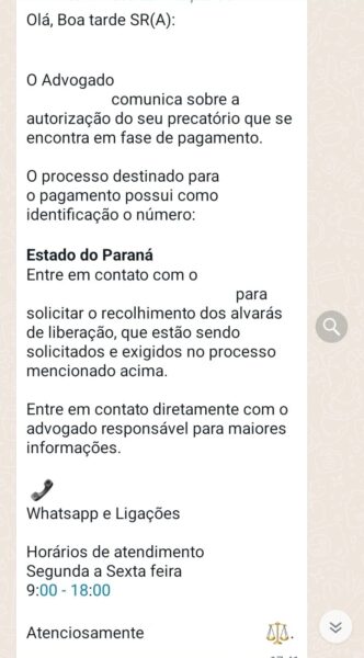 Estelionatários falsificam documentos do Tribunal de Justiça do Paraná, utilizam dados pessoais do(a) sindicalizado(a) e números reais de processos em andamento, nomes e fotos de advogados(as) que atuam no jurídico da APP e de desembargadores(as).