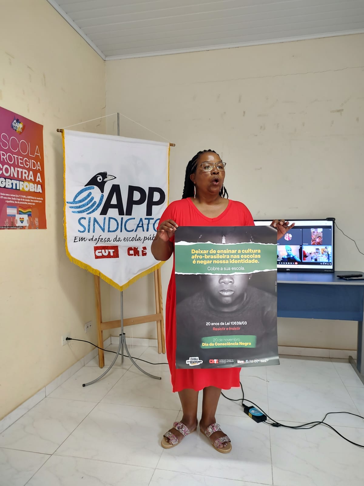 Entre as ações, a APP participou da Audiência Pública dos 20 anos da aprovação da Lei 0.639/03 e 11.645/08. Convocada pelo deputado estadual Renato Freitas (PT), a audiência debateu como a educação pública paranaense pode fortalecer a implementação da Lei nº 10.639/03, que incluiu no currículo da educação básica a obrigatoriedade do ensino de “História e Cultura Afro-Brasileira”.