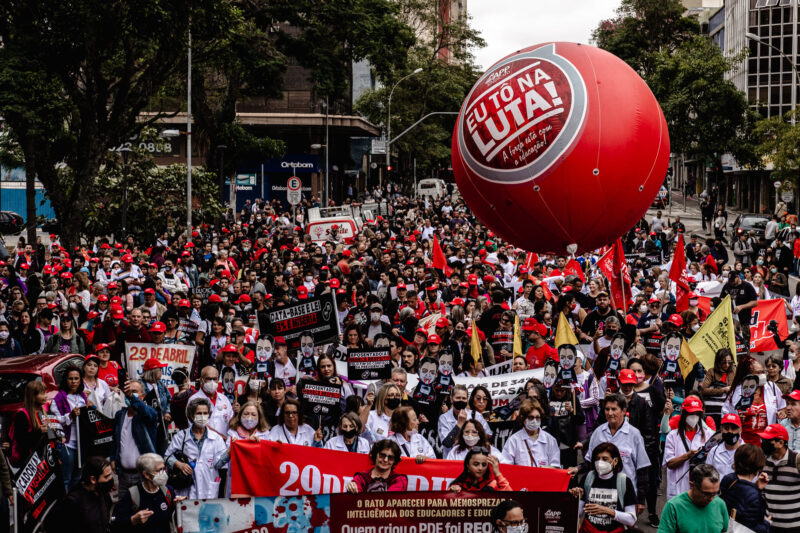 Educadores(as) paralisaram suas atividades em escolas de todo o Paraná e uma multidão tomou as ruas da capital. Dezenas de atos descentralizados também ocorreram em diversas regiões do estado, reunindo trabalhadores(as) que não puderam vir a Curitiba.