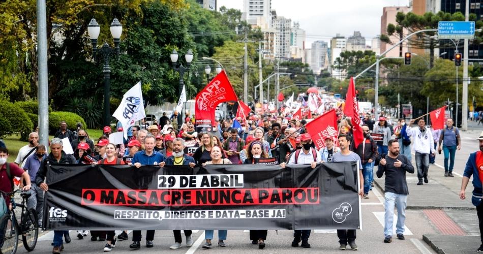 Centenas de escolas aderiram totalmente à greve e ao menos 5 mil pessoas participaram da marcha na capital, em uma data simbólica pelo duplo sentido histórico: o 29 de abril de 2015, quando o governo Beto Richa agrediu brutalmente milhares de servidores(as), e a semana de aniversário da APP-Sindicato, que completou 75 anos no dia 26.
