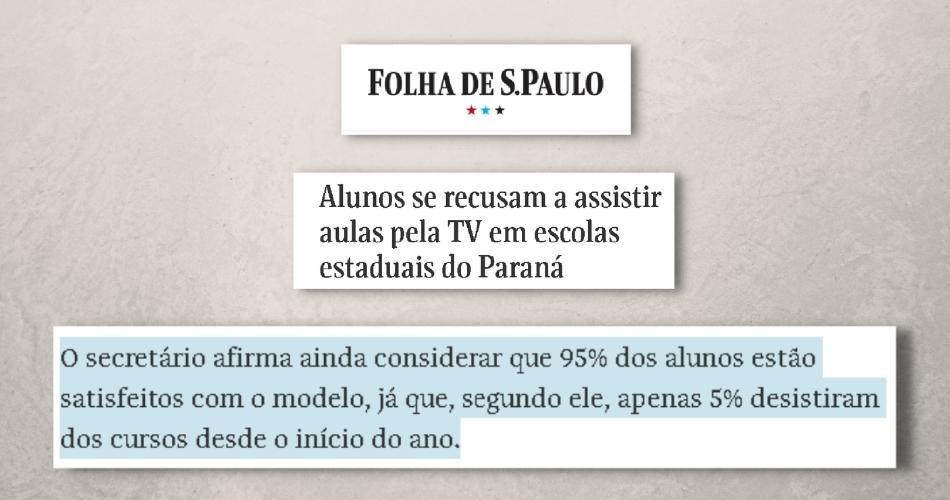 Ao lado dos argumentos de Feder, a matéria da Folha traz o posicionamento de quem realmente entende de Educação, como Fernando Cássio, professor da Universidade Federal do ABC. “Os estudantes do Paraná estão pedindo para ter professor em sala de aula. Eles estão reivindicando conhecimento, estão dizendo qual é a escola que querem. Devemos prestar atenção a isso. Menosprezar essa demanda é menosprezar a educação”, diz.