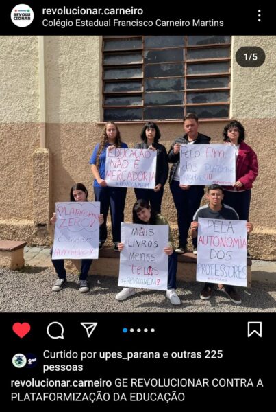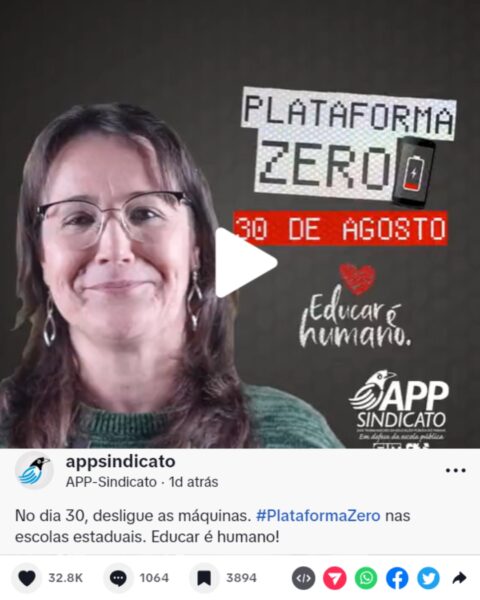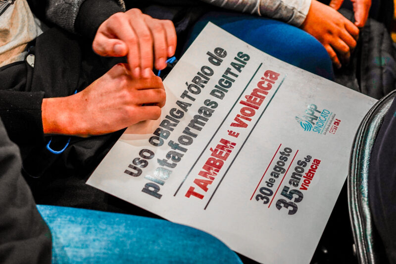 “Foi um marco de repúdio contra as violações que estamos vivenciando nas escolas. Nós precisamos ter autonomia para ministrar as nossas aulas, ensinar e ver se os estudantes realmente estão tendo aprendizado. Nossa principal bandeira de luta é para que as plataformas sirvam à educação. Hoje é a educação que serve às plataformas”, avalia.