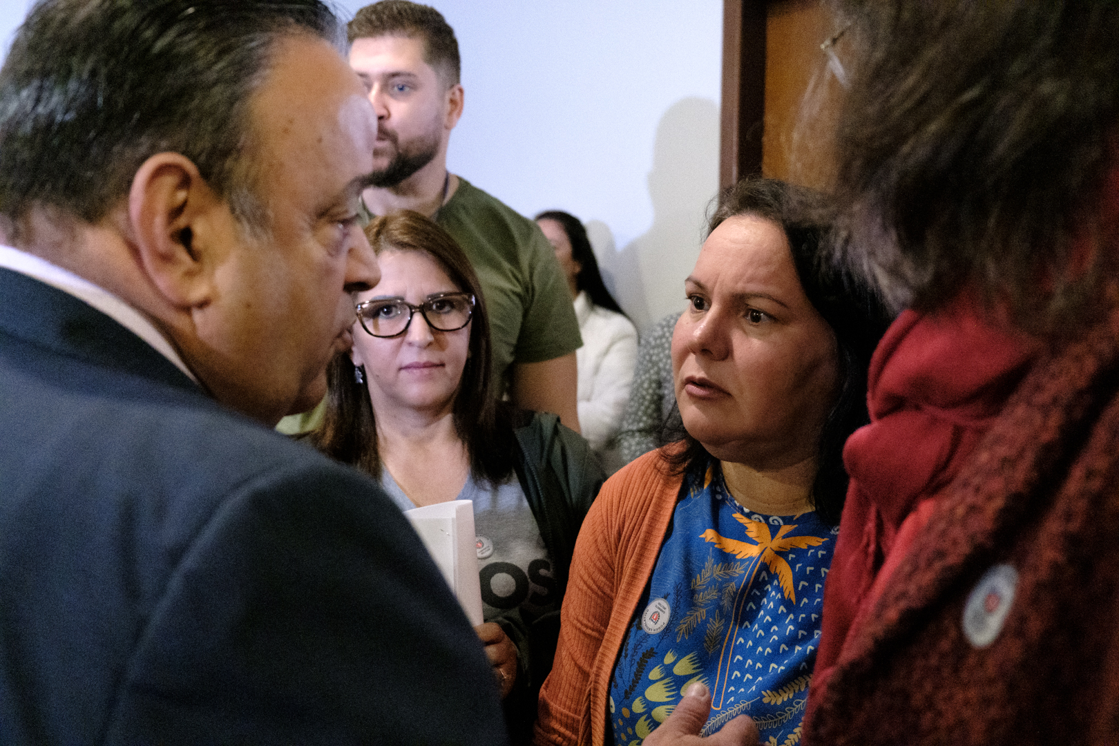 Desde segunda-feira, dirigentes do Sindicato percorrem os corredores e gabinetes da Alep para apresentar um conjunto de alterações consideradas essenciais para corrigir injustiças do PL, em especial a exclusão dos(as) professores(as) aposentados(as) sem paridade do reajuste do Piso.