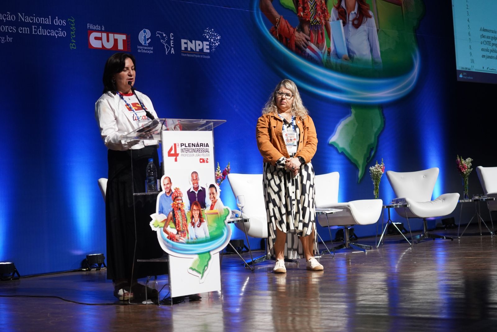 “Um dos pontos altos da nossa Intercongressual foi o debate sobre a necessidade urgente da revogação do Novo Ensino Médio, das BNCCs para que possamos retomar o currículo de qualidade no nosso país e instituir um grupo de trabalho, que debata um ensino médio que atenda a juventude brasileira”, explica a Vice-presidenta da CNTE e secretária de Assuntos Jurídicos da APP-Sindicato, Marlei Fernandes.