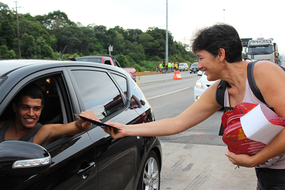 Infelizmente, no meio da atividade, a empresa que gerencia a praça de pedágio, alegando que a entrega de material era irregular e insegura, chamou a Polícia Rodoviária Federal para interrompê-la. Apesar do aparato ostensivo, houve um diálogo respeitoso entre policiais e os(as) diretores da APP. Por conta disso, a distribuição foi suspensa, mas, mesmo assim, o sentimento do grupo foi de entusiasmo. “Agora, contamos com o apoio da categoria para ajudar nos locais nos quais serão realizadas as outras ações, para que transmitamos ao povo o que temos sofrido e quais os desafios que ainda precisamos enfrentar”, finalizou o presidente do sindicato.