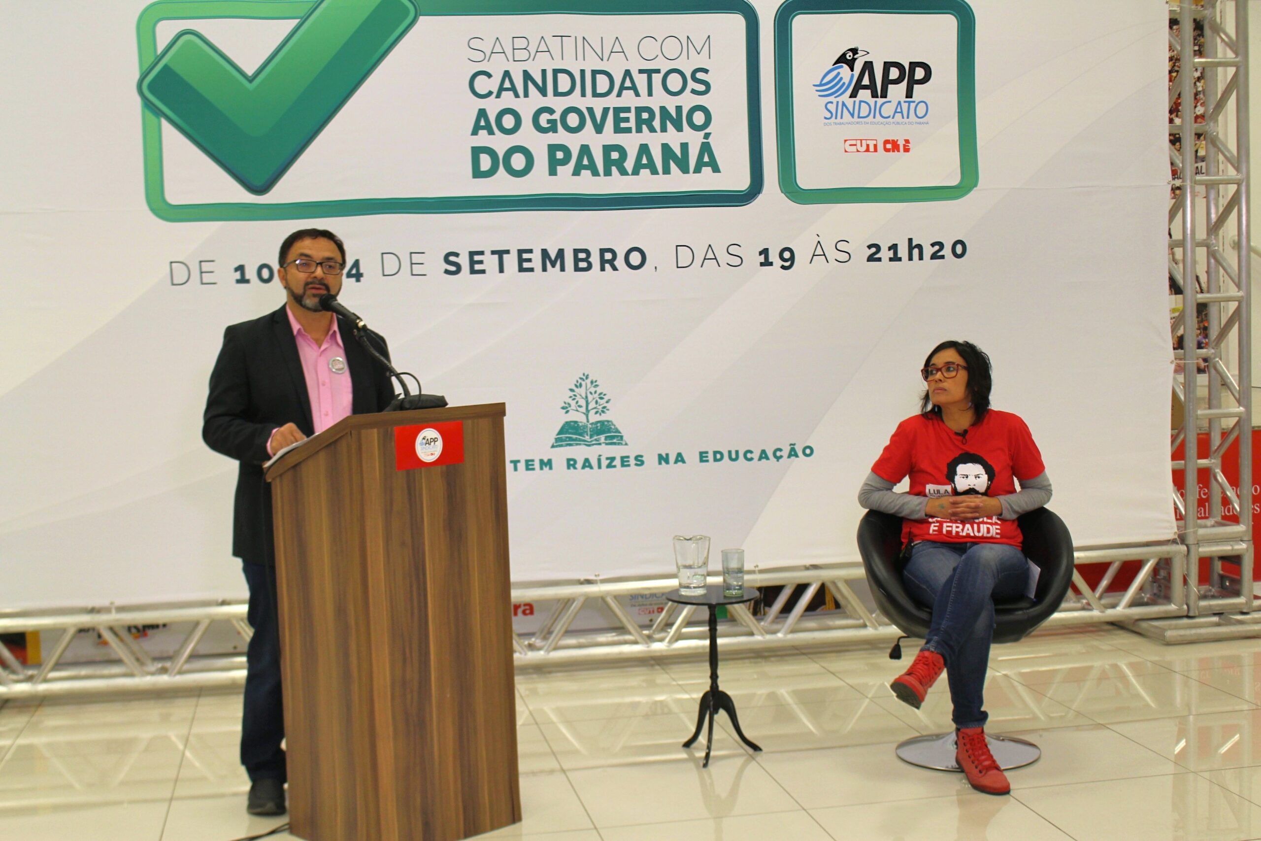 - Durante a entrevista, a candidata respondeu oito perguntas relacionadas com as principais reivindicações dos(as) professores e funcionários(as) de escola. A Sabatina com os(as) Candidatos(as) ao Governo do Paraná é uma iniciativa da APP para que a comunidade escolar e a sociedade conheçam como cada postulante ao governo do Estado pretende conduzir a formação de crianças, jovens e adultos, e também lidar com problemas que afligem a categoria.