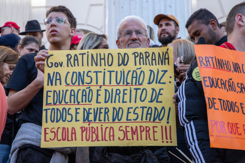 A onda privatista avançou para diversos estados, ameaçando até o que é de direito constitucional do cidadão, como a educação pública. No Paraná, o desmonte educacional se iniciou com o projeto de militarização das escolas pelo governo de Ratinho Jr, que, não satisfeito, resolveu tramitar o projeto Parceiro da Escola para entregar 177 escolas públicas para a iniciativa privada.