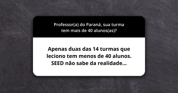 Após a repercussão da nota do governo, a APP-Sindicato criou uma caixinha no Instagram com a pergunta: Professor(a) do Paraná, sua turma tem mais de 40 alunos(as)?