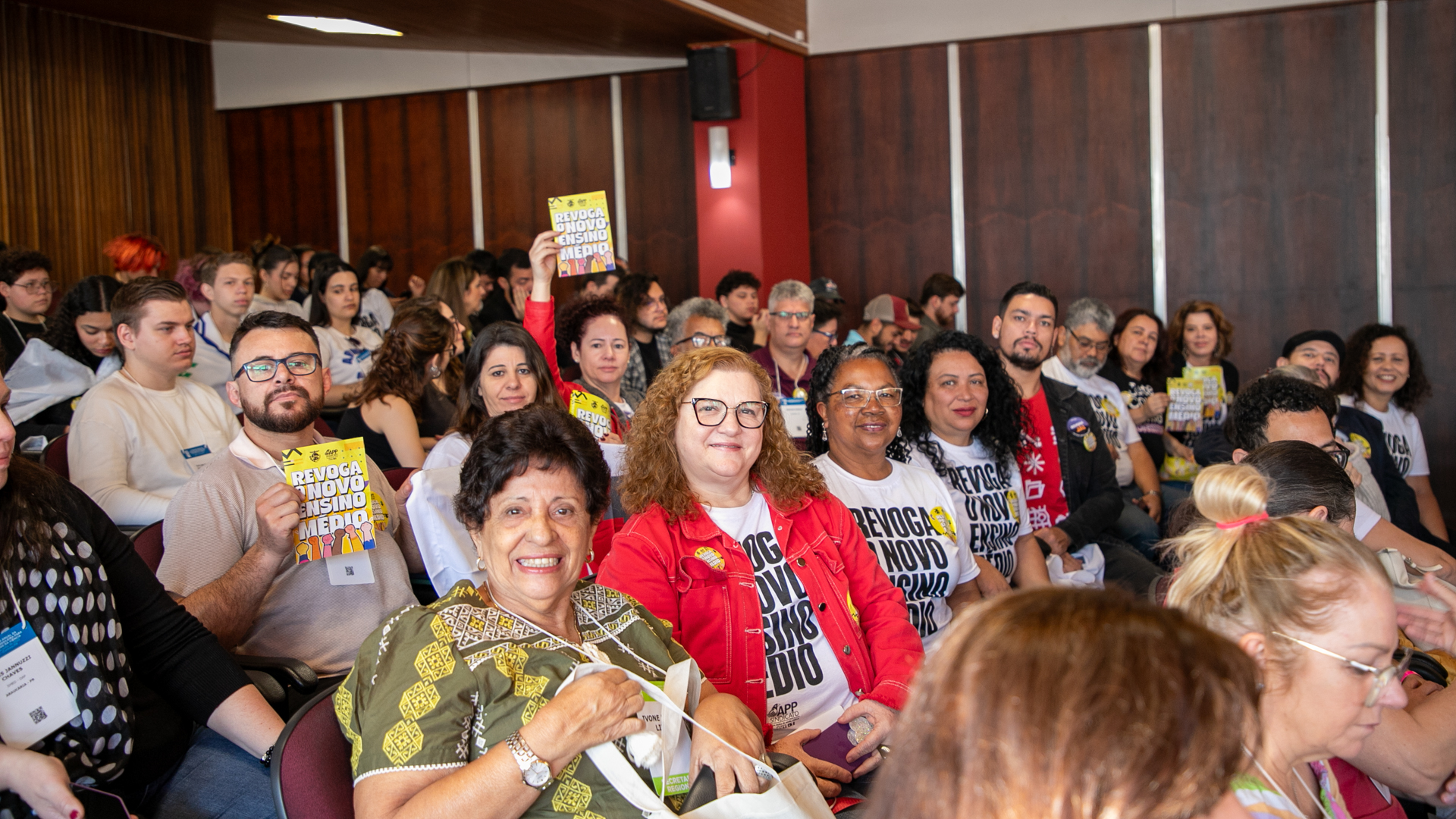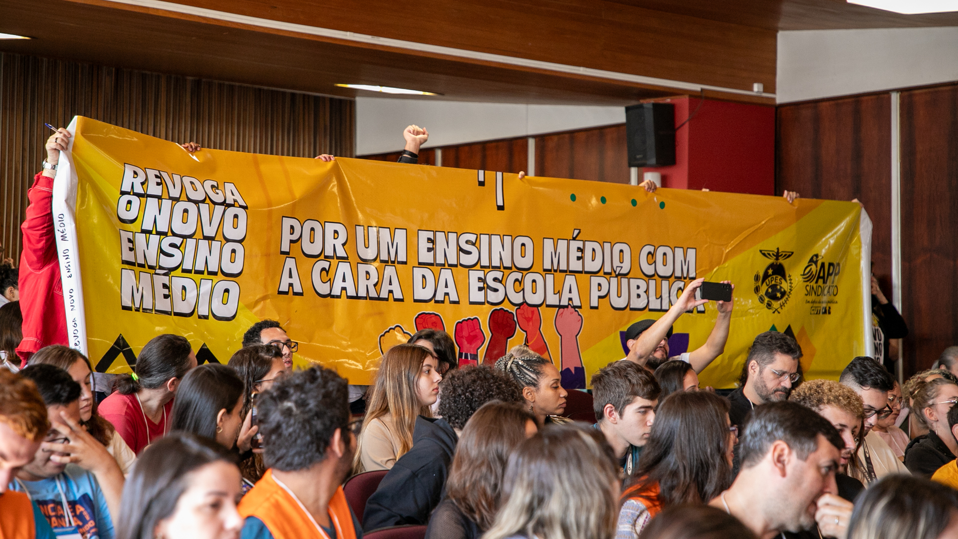 Já na chegada, o ministro foi abordado em tom de diálogo e cobrado pela revogação. Elio da Silva, secretário de Finanças da APP, asseverou ao cumprimentá-lo: “É para revogar. Não tem nada para remediar”, ecoando a preocupação da categoria em todo o país, que está em alerta com a possibilidade do MEC efetuar “remendos” no modelo, sem atacar as raízes do problema.