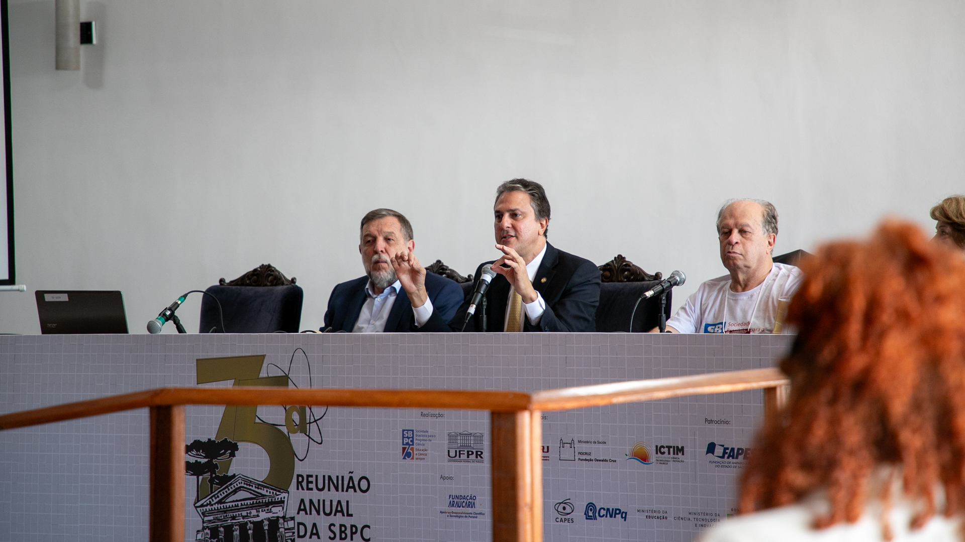 No Auditório Central do Setor Tecnologia da UFPR, manifestantes também cobraram dele o #RevogaNem, cantando “Não tem defesa, não tem remédio, revoga já o novo ensino médio”. O canto foi repetido durante a composição da mesa de debates, coordenada pelo presidente da SBPC, Renato Janine Ribeiro (SBPC).