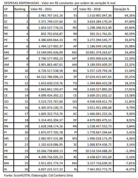 O ranking foi elaborado pelo economista Cid Cordeiro, da assessoria da APP.