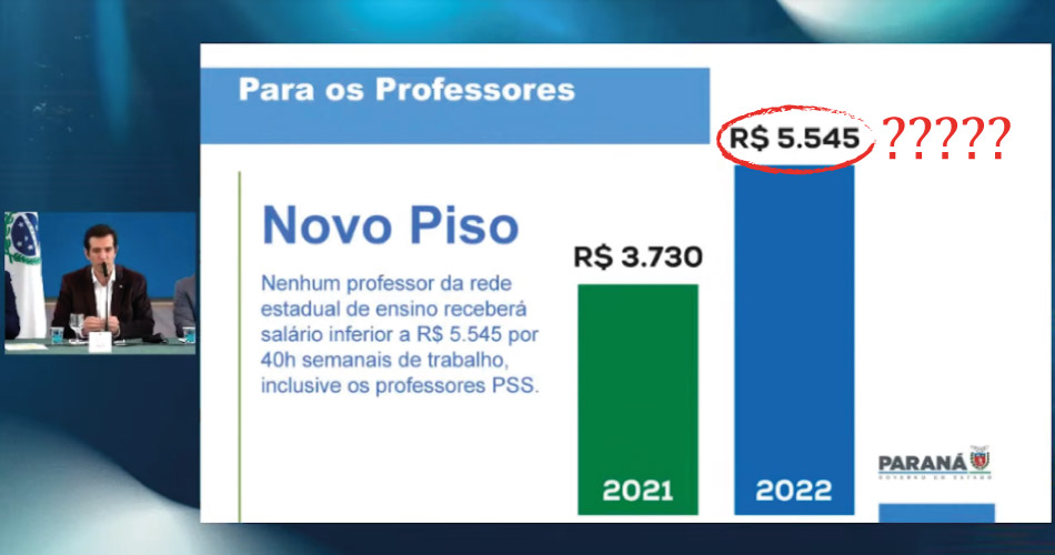 Mas foram inúmeras as manifestações públicas do governador e do secretário propagandeando que “nenhum professor do Paraná receberá menos do que R$ 5.545”.