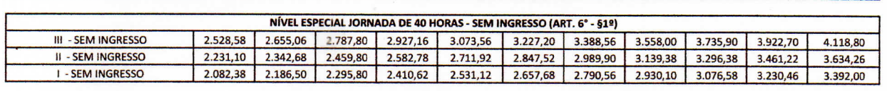 A diferença entre níveis na nova tabela também não corresponde ao que está na Lei, sugerindo que o governo não encontrou uma forma de equacionar os valores prometidos e os índices alterados no Plano de Carreira.