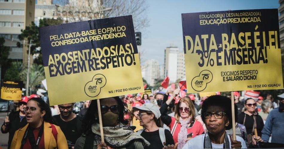 Apenas dois candidatos ao governo do Paraná não assumiram o compromisso de, caso eleitos, recompor as perdas salariais dos(as) educadores(as), acabar com o desconto de aposentados(as) e revogar a terceirização dos(as) funcionários(as) de escola: Ratinho Junior (PSD) e Joni Correia (DC).