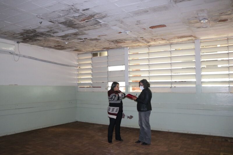 “Os problemas são de infiltrações que estão ocorrendo há anos. Parte das lajotas da laje estão podres e caindo no chão, por esse motivo isolamos essas 3 salas até que seja feita uma reforma urgente”, explica o Diretor Defesa Civil Municipal de Maringá, Adilson Costa.