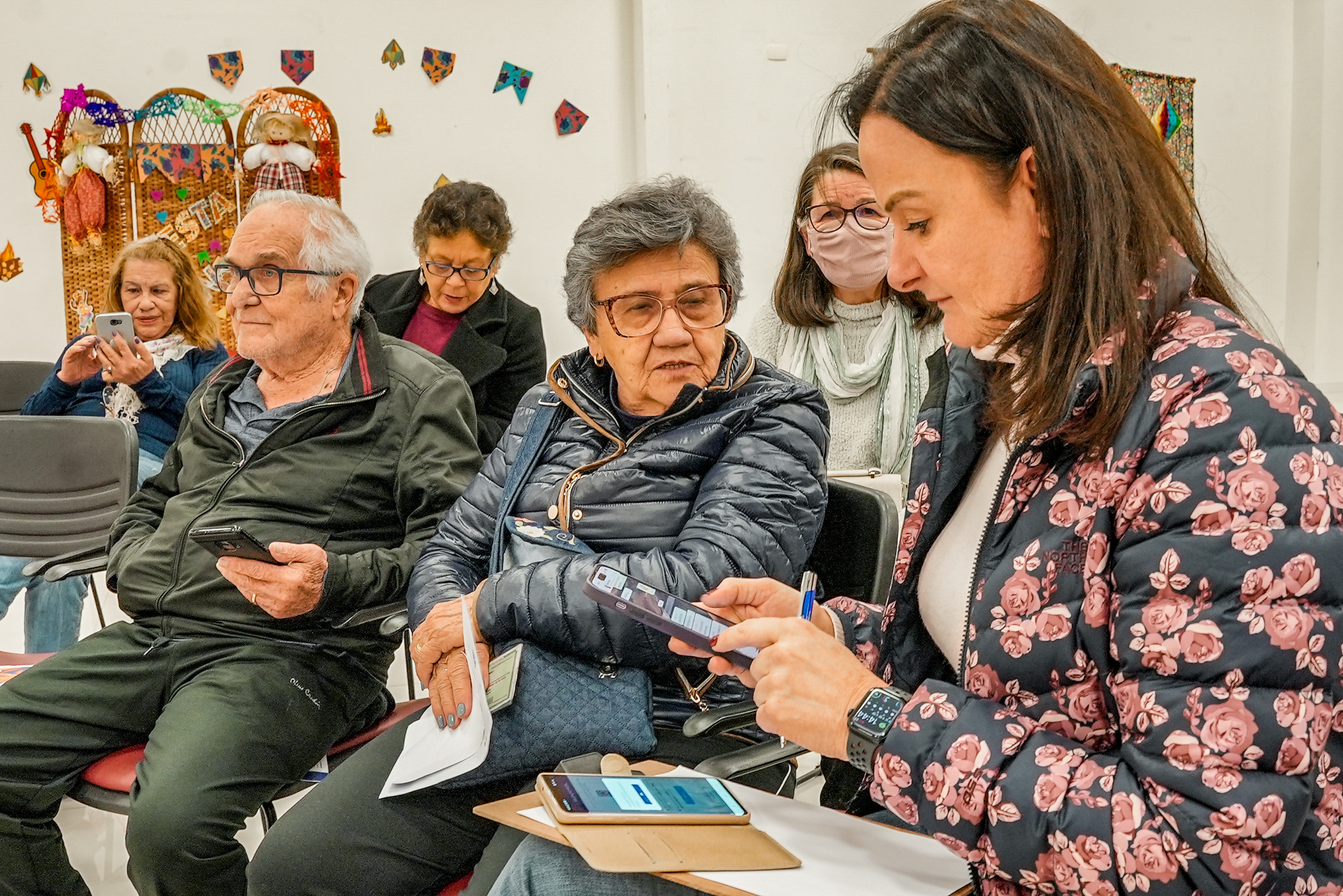 A Secretaria de Aposentados da APP concluiu, nesta quinta-feira (20), o treinamento presencial para fazer pelo celular o recadastramento exigido pela ParanaPrevidência. “Hoje o intuito é recadastrar vocês, lembrando que o prazo para recadastramento não termina hoje, vai até 30 de dezembro”, disse a secretária Maria Adelaide Mazza Correia.